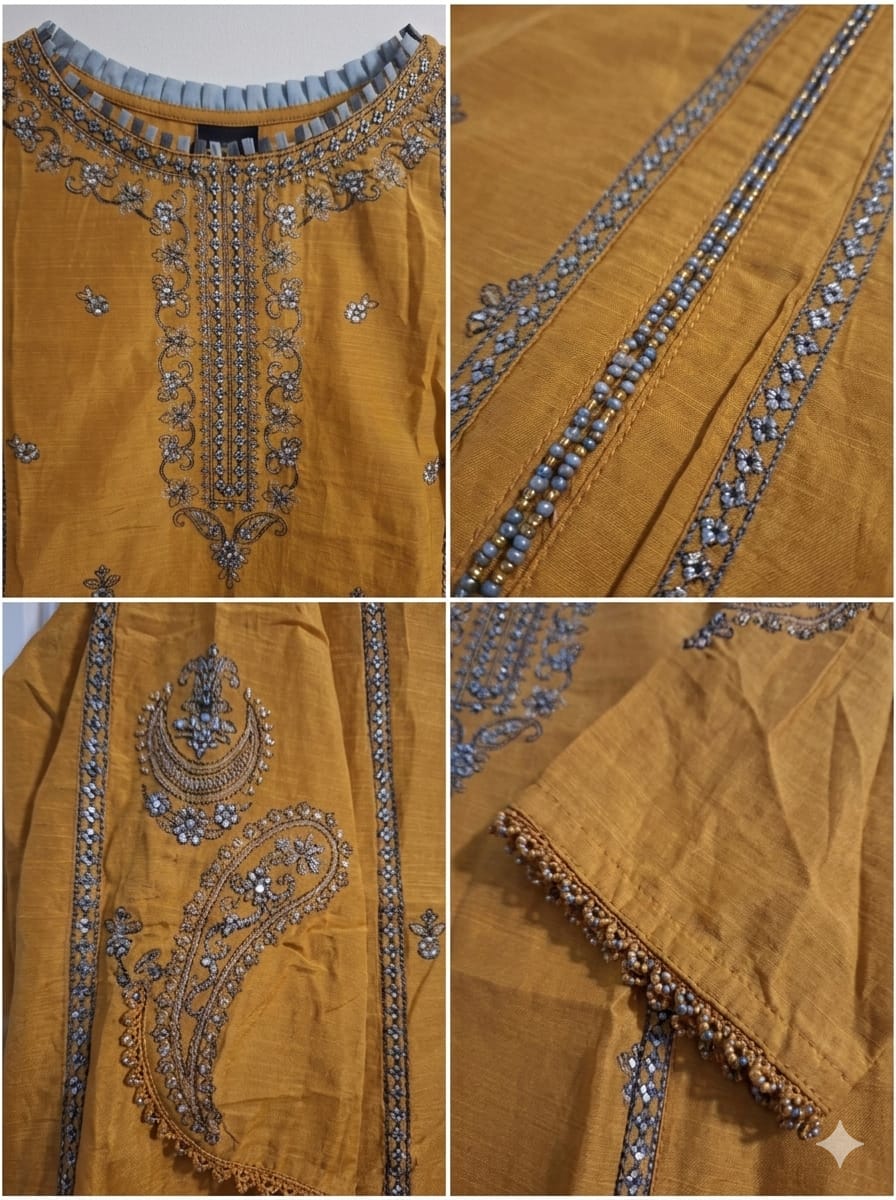 Embroidered A-Line Shirt, Round Neckline & Sleeves